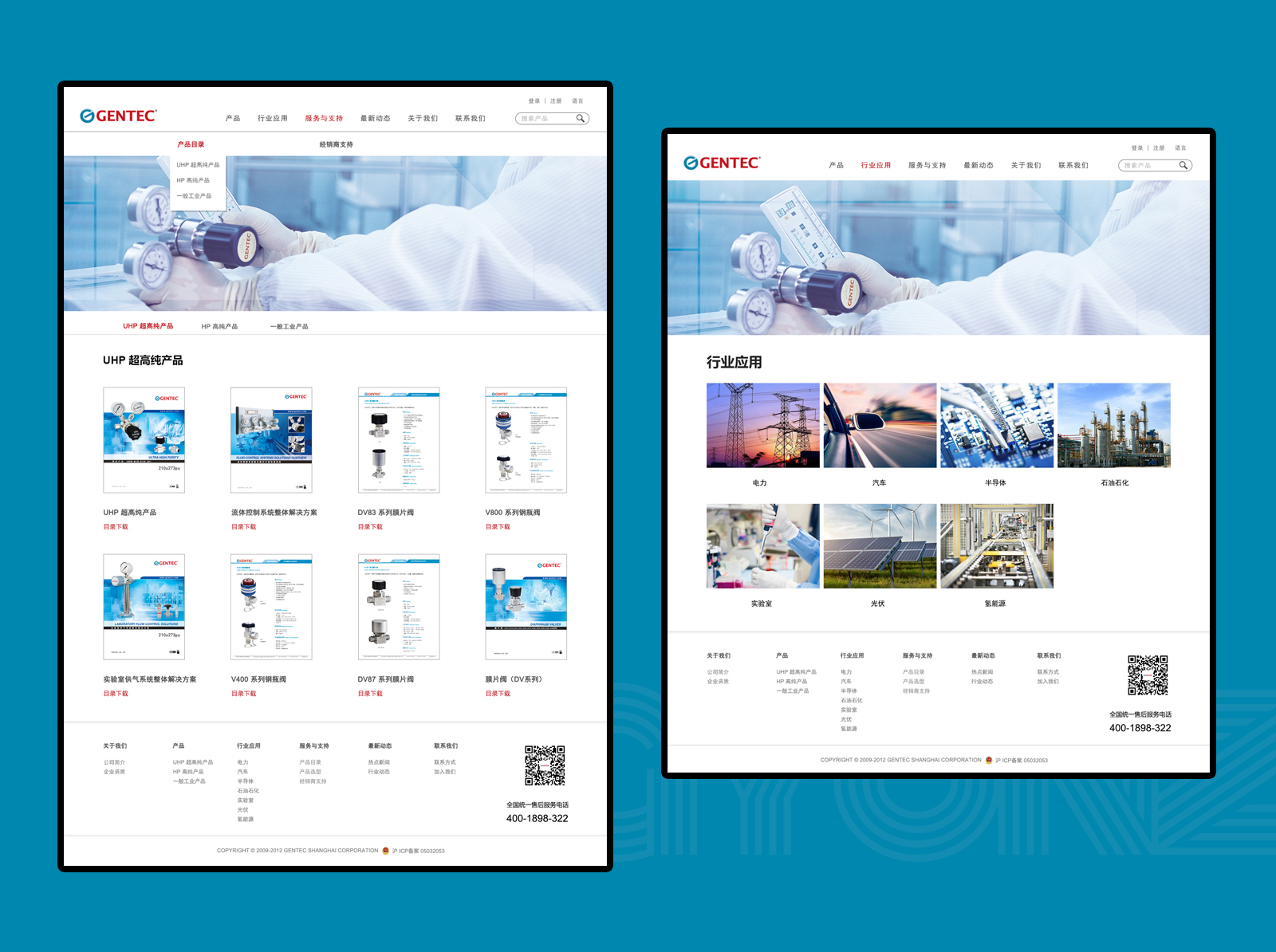 网站整体配色方面,在使用主灰蓝色为主的情况下使用红色为辅色,两种颜色的搭配会产生强烈的对比感突出主体内容的同时,更强化高端与视觉聚焦的效果。