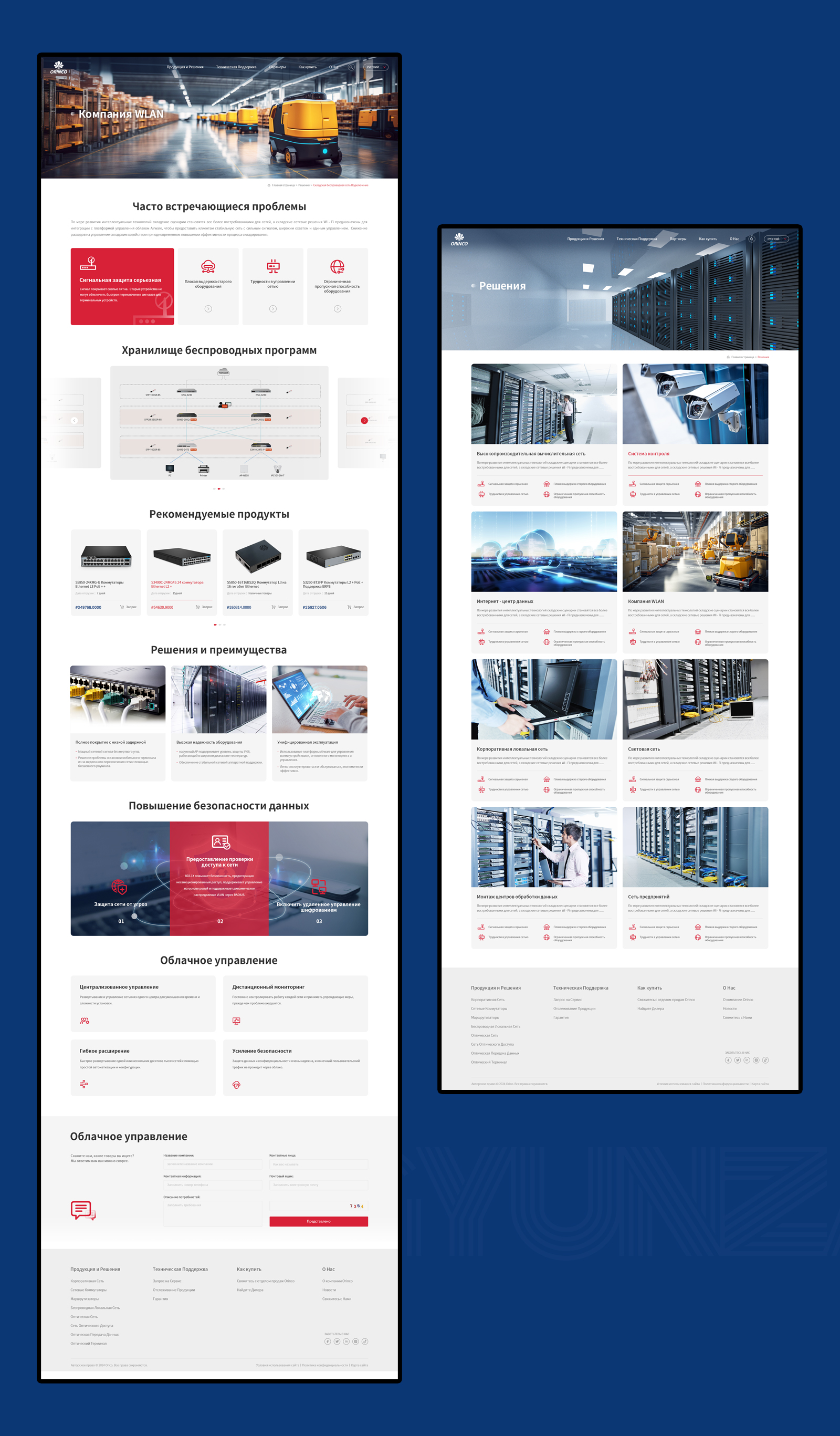 网站整体配色方面,在使用主VI蓝色为主的情况下使用红色为点缀色,两种颜色的搭配会产生强烈的对比感突出主体内容的同时,更强化高端与视觉聚焦的效果