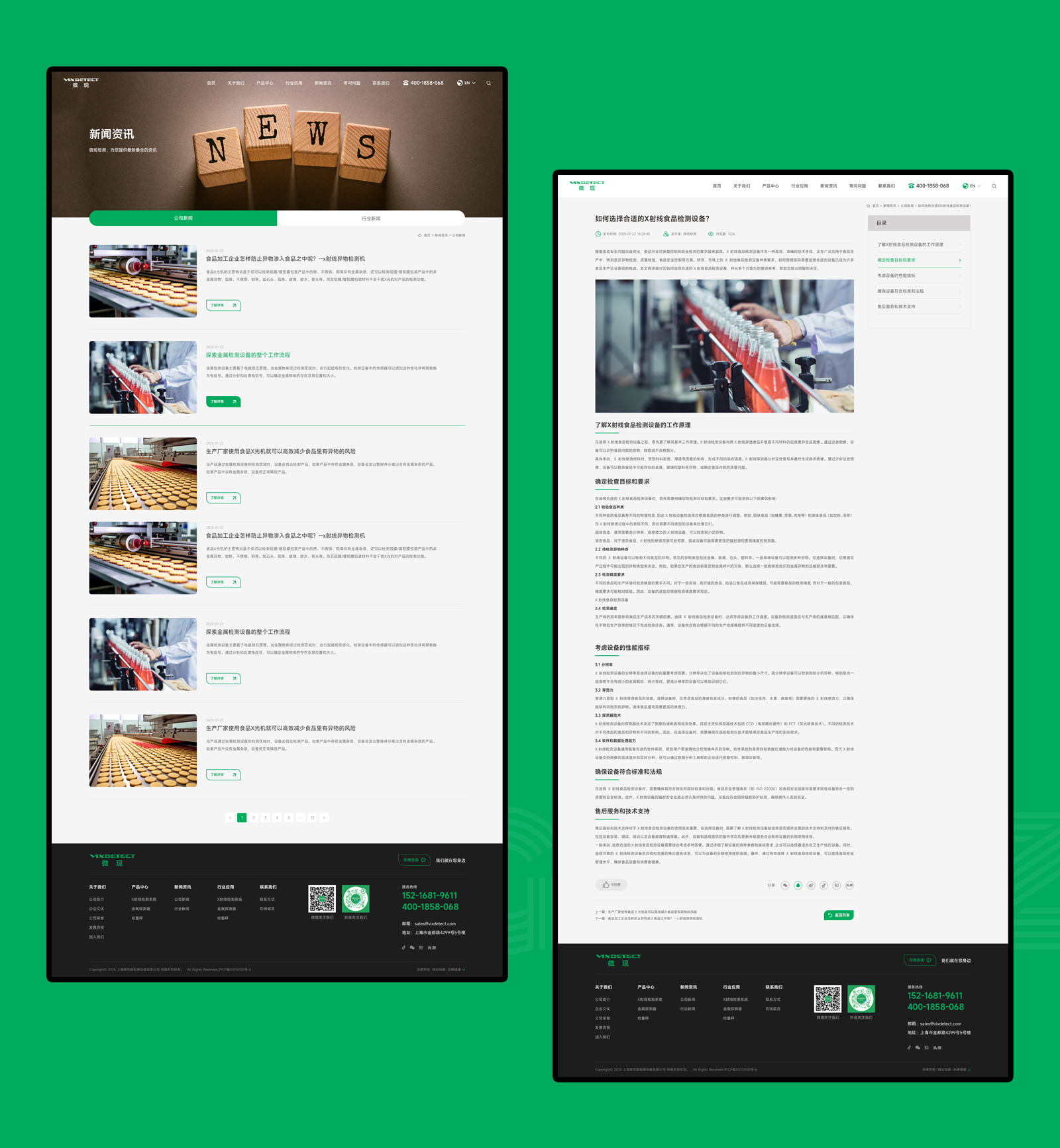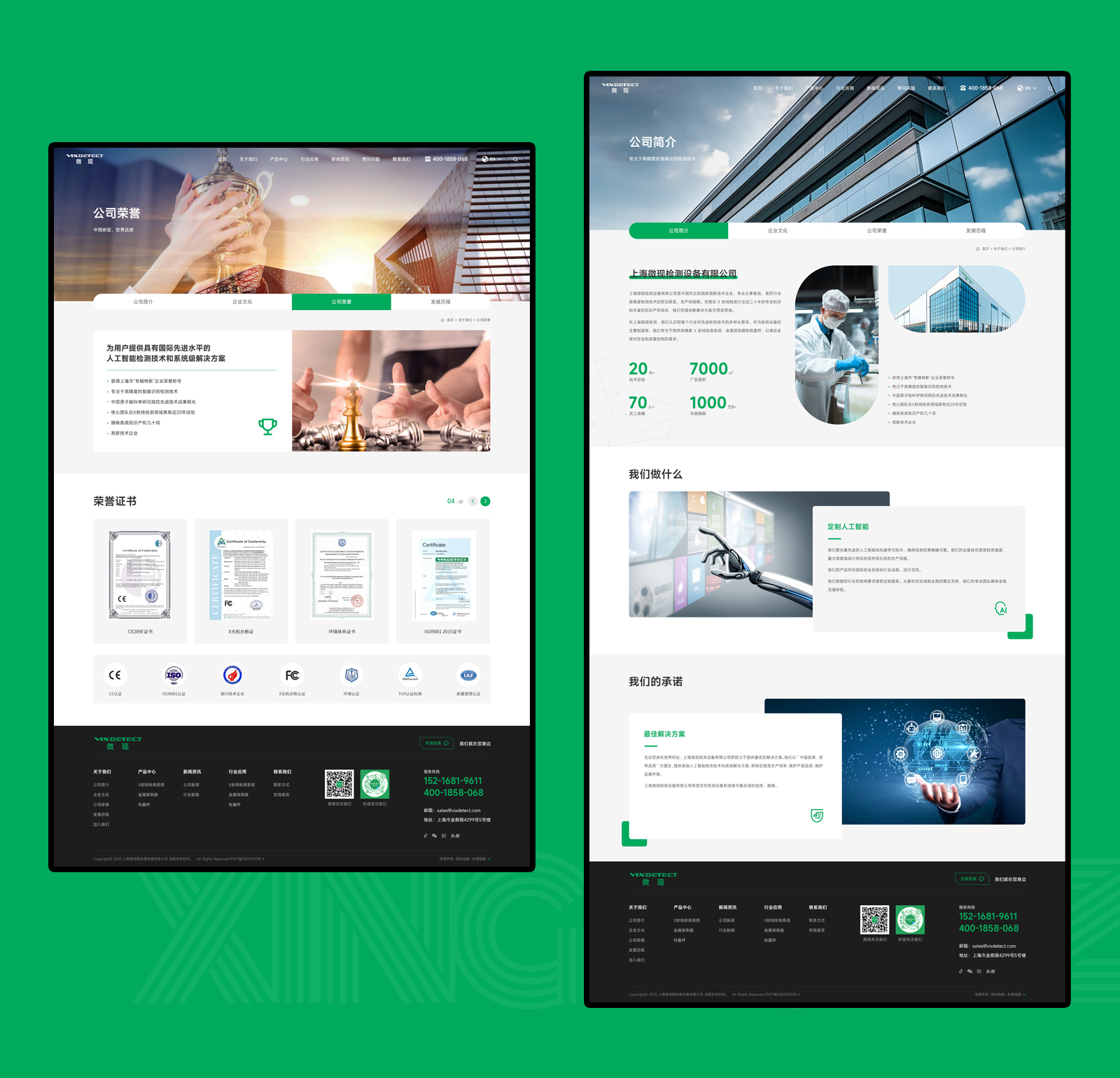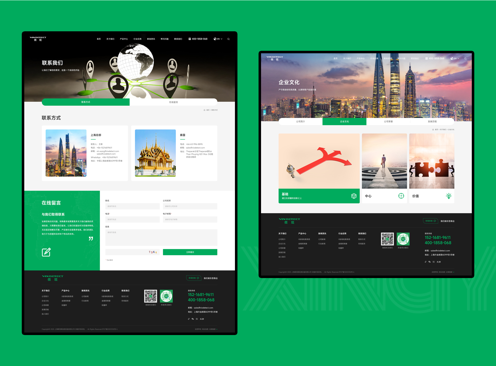 网站整体配色方面,在使用主VI绿色为主的情况下使用灰白色为背景,两种颜色的搭配会产生强烈的对比感突出主体内容的同时,更强化高端与视觉聚焦的效果