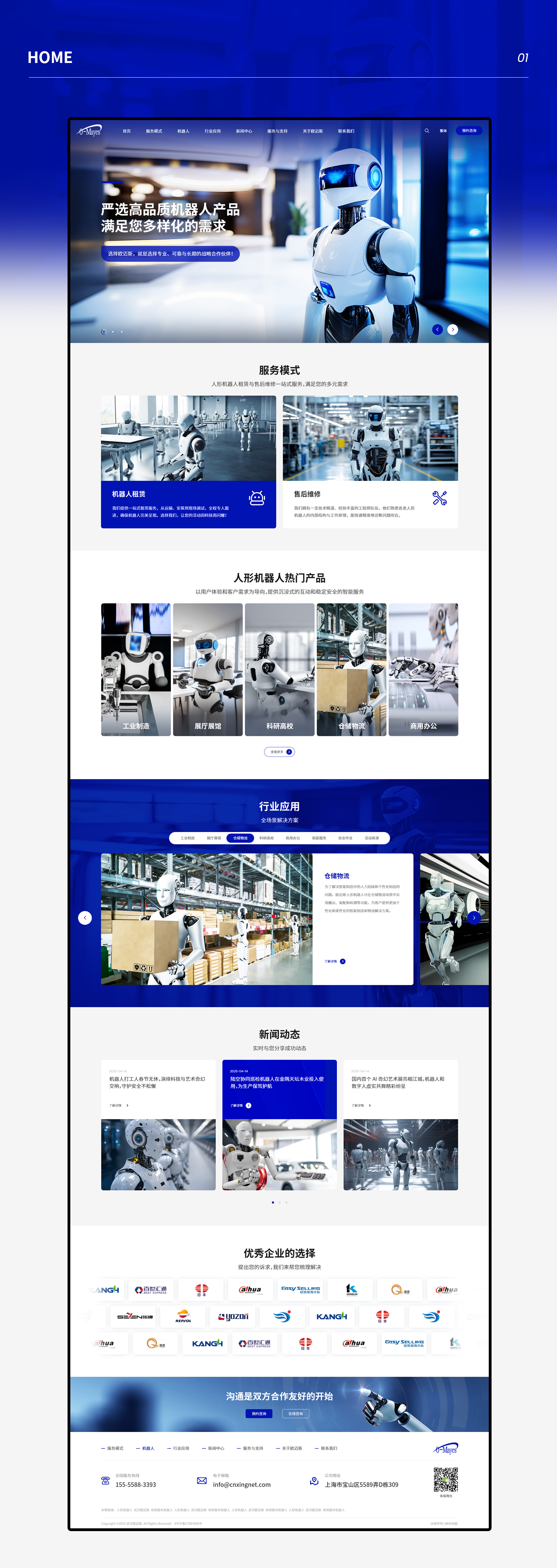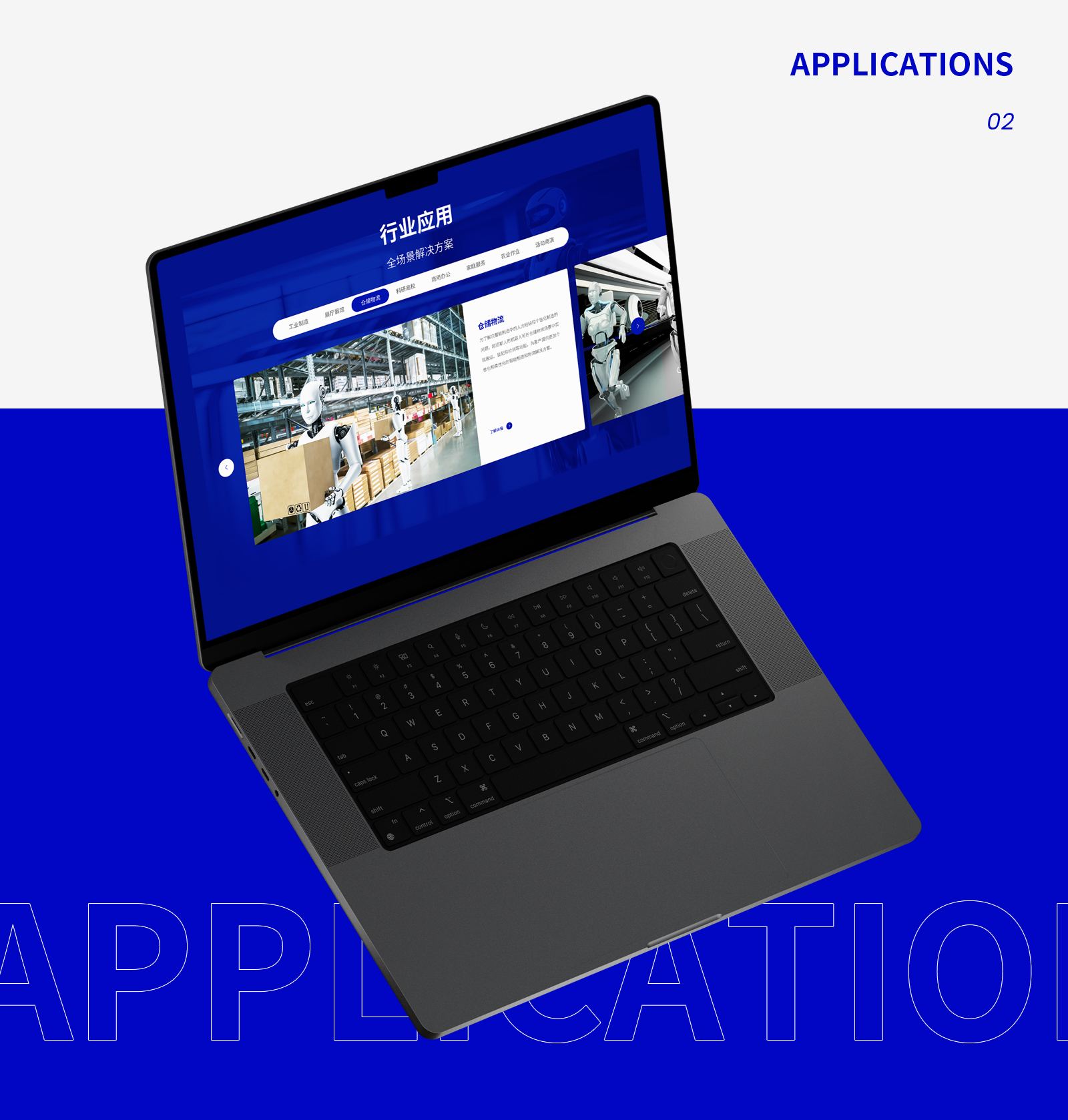 网站整体配色方面,在使用主VI科技蓝为主的情况下使用灰白色为背景,两种颜色的搭配会产生强烈的对比感突出主体内容的同时,更强化高端与视觉聚焦的效果。