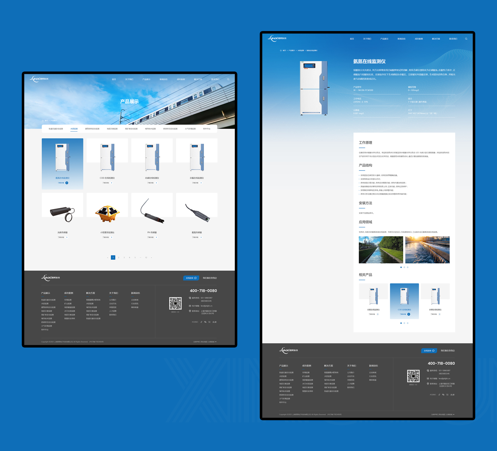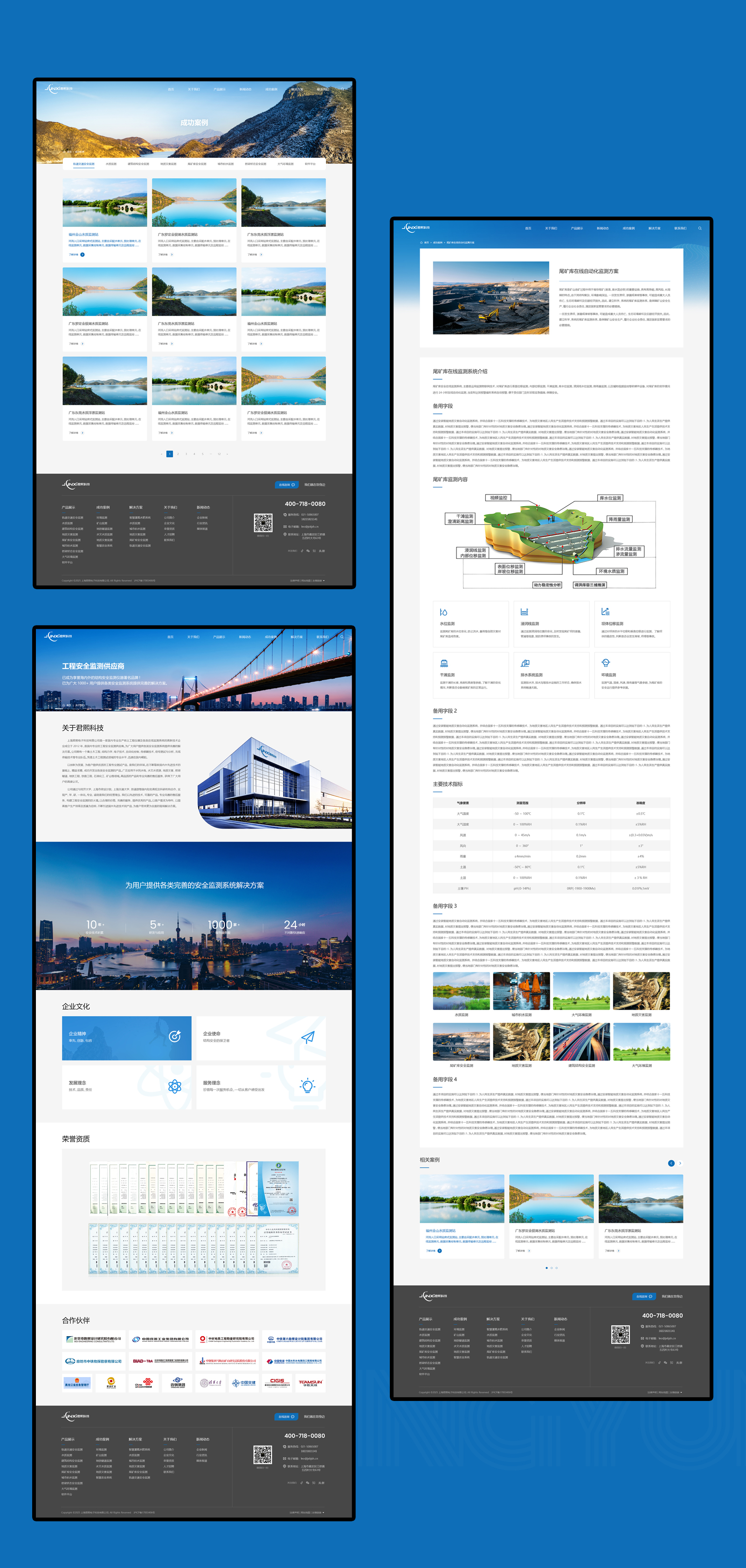网站整体配色方面,在使用主VI蓝色为主的情况下使用灰白色为背景,两种颜色的搭配会产生强烈的对比感突出主体内容的同时,更强化高端与视觉聚焦的效果。