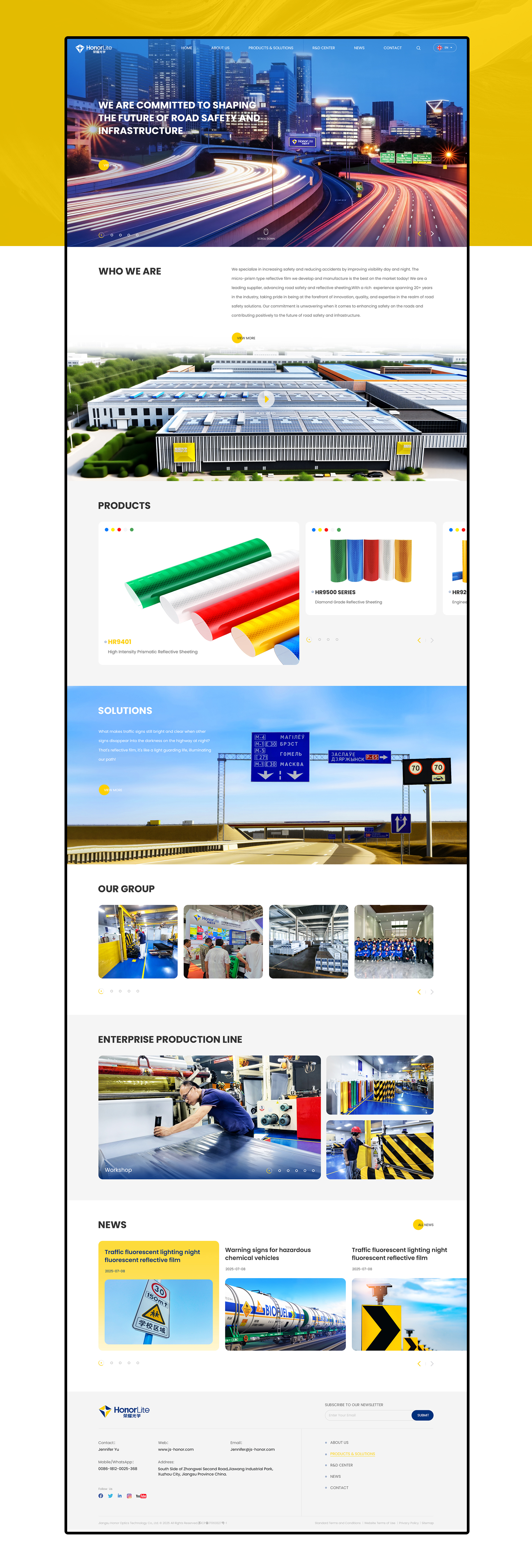我们研发和生产的微棱镜型反光膜是目前市场上最好的产品!作为行业领先的供应商,我们致力于推动道路安全和反光膜技术的发展。凭借在行业20多年的丰富经验,我们以处于道路安全解决方案领域的创新、质量和专业知识的前沿而自豪。在提升道路安全、为道路安全和基础设施的未来做出积极贡献方面,我们的承诺坚定不移。