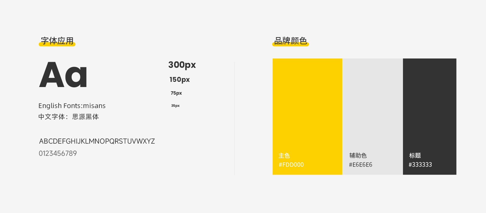 网站整体配色方面,在使用主VI,明亮黄为主的情况下使用白色为背景,两种颜色的搭配会产生强烈的对比感突出主体内容的同时,更强化高端与视觉聚焦的效果