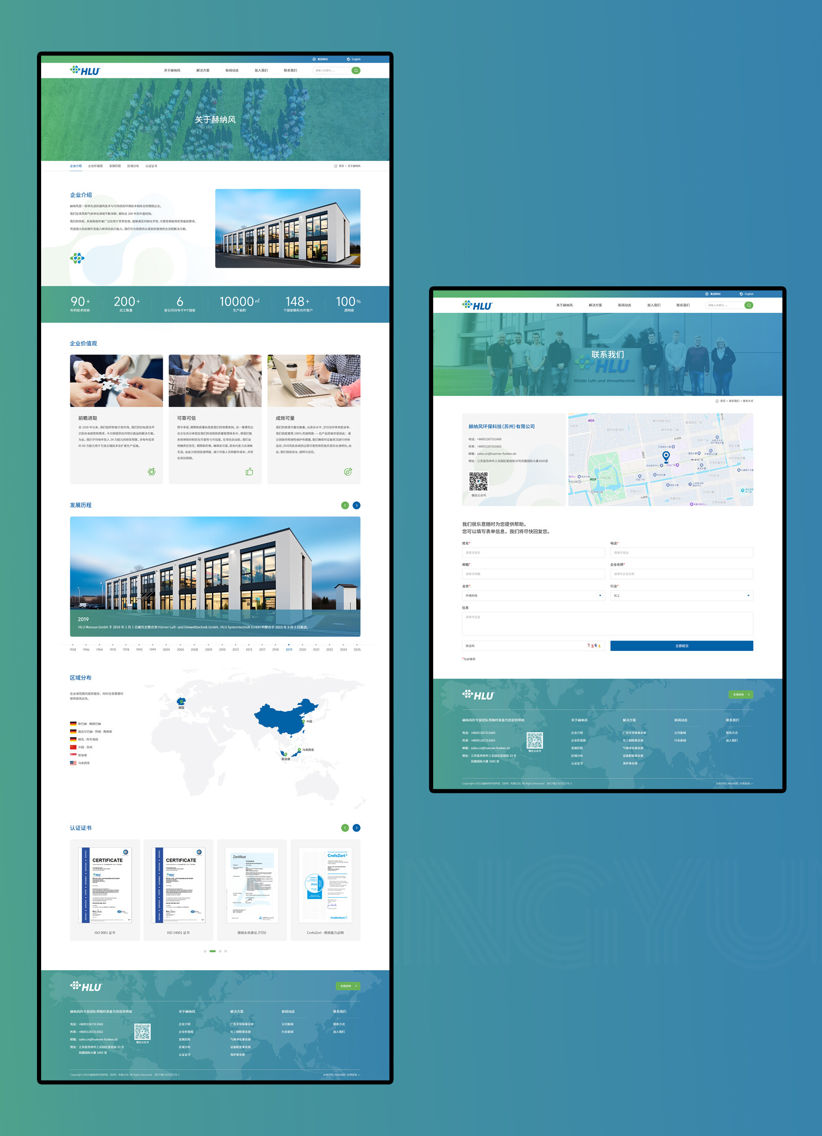 网站整体配色方面,在使用主VI天空蓝与环保绿色为主的情况下使用白色为背景,两种颜色的搭配会产生强烈的对比感突出主体内容的同时,更强化高端与视觉聚焦的效果。